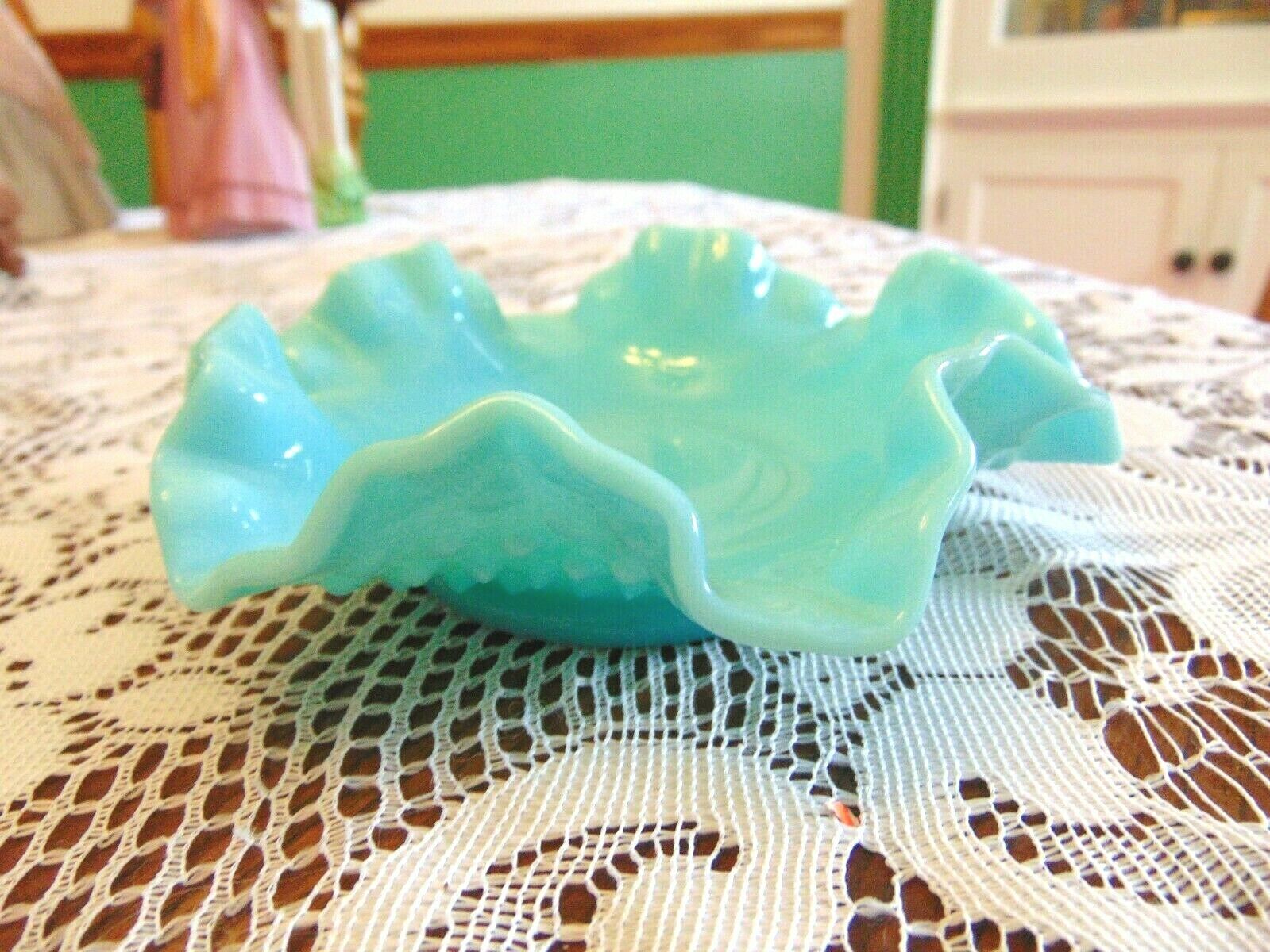 Early Fenton Turquoise Milk Glass Hobnail Dish