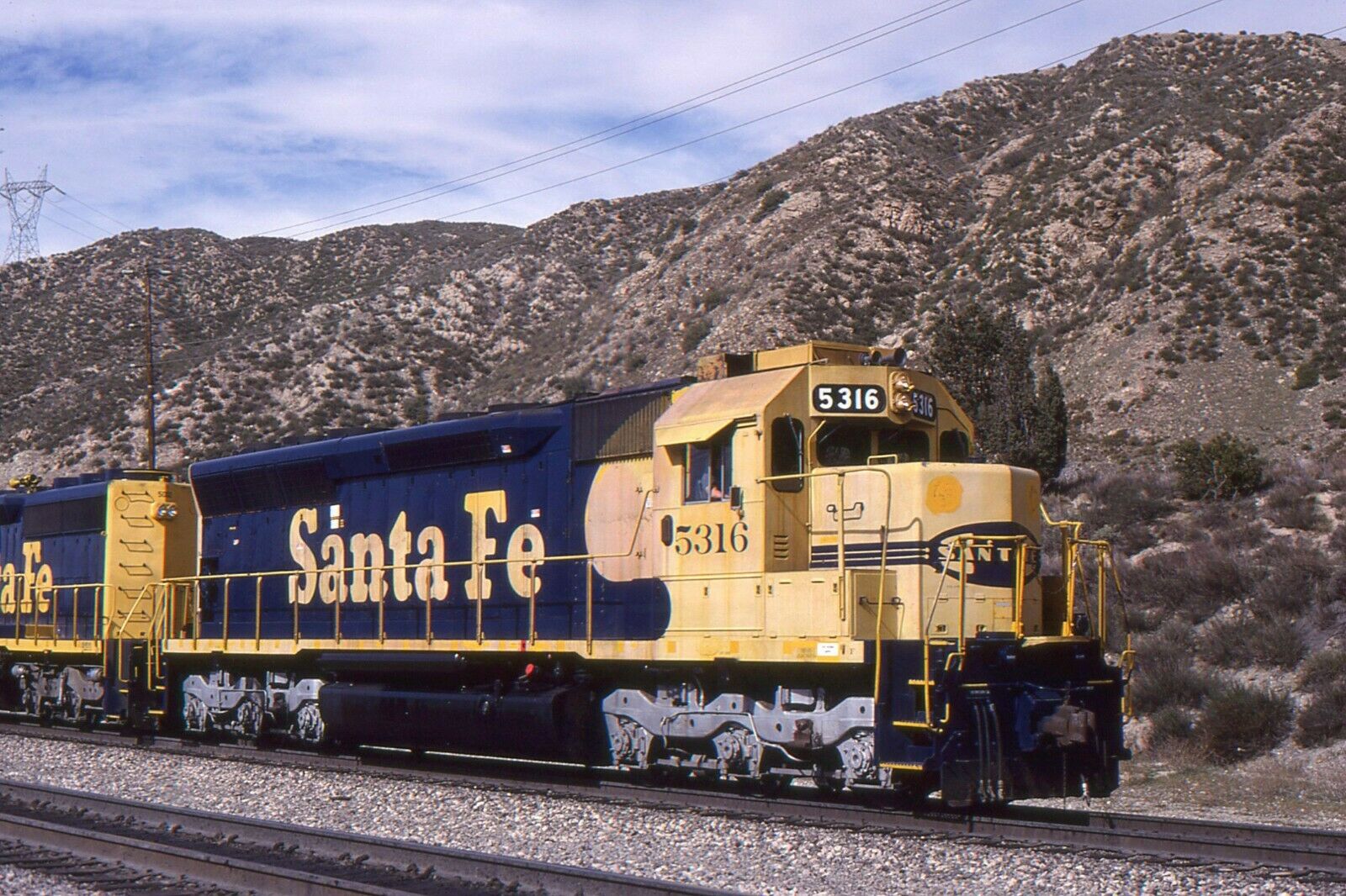 Title (ebay affiliate link): Original slide-Santa Fe SD45U #5316 In Action/ Cajon Pass,CA. March 1990-Nice!!