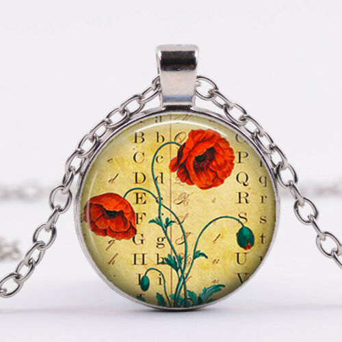 Title (ebay affiliate link): Antique Poppy Glass dome Necklace chain Pendant Wholesale Silver