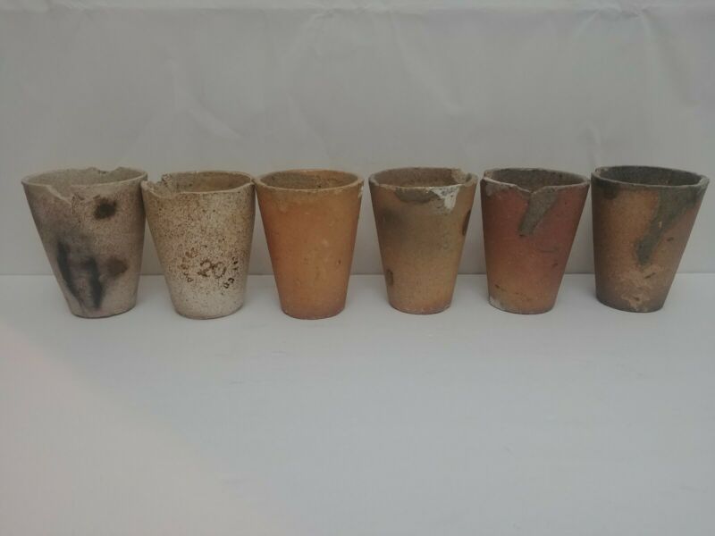 Title (ebay affiliate link): 6 Vintage Assay Crucibles, 5 marked, approximately 4" Tall