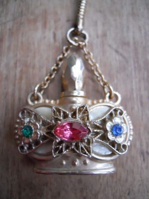 Title (ebay affiliate link): Vintage key chain Crown Perfume bottle stopper jeweled
