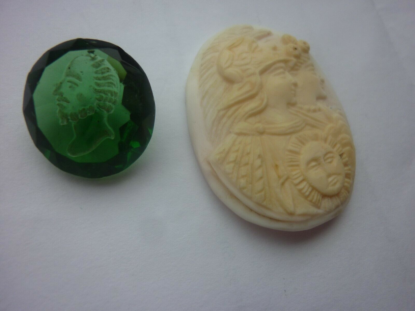 Title (ebay affiliate link): Antique Georgian Carved Shell Cameo unmounted & green cut glass intaglio