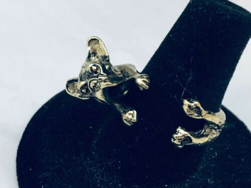 CUTE ANTIQUE GOLD TONE FRENCH BULLDOG WRAP RING
