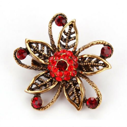 Red Blooming Flower Five Hollow Leaves Antique Crystal Pin and Brooch
