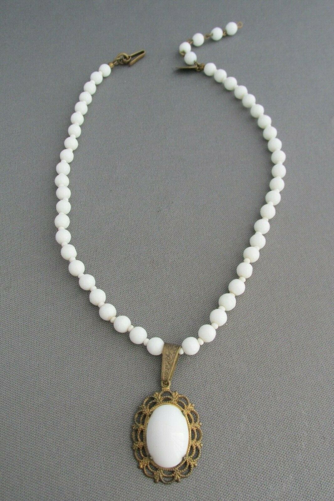 VINTAGE MIRIAM HASKELL WHITE MILK GLASS ADJUSTABLE CHOKER PENDANT NECKLACE