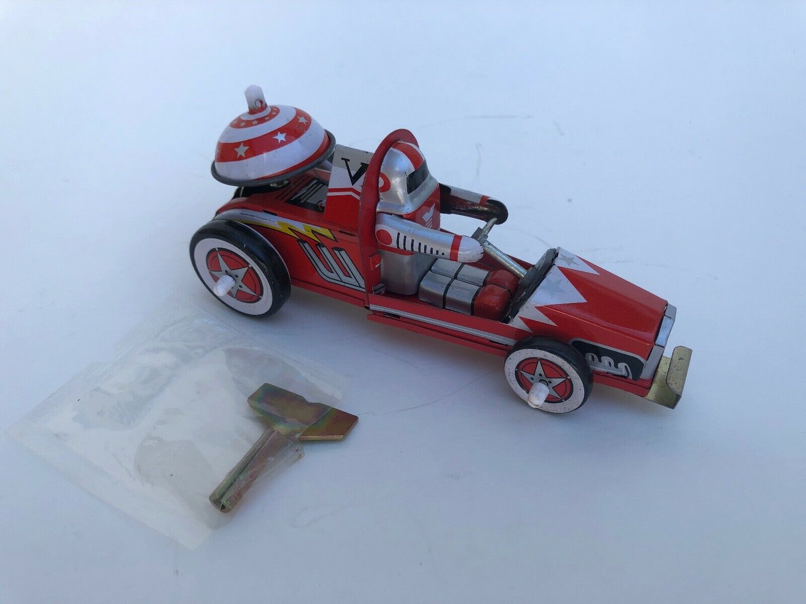 Vintage tin wind-up RACER race car in original box