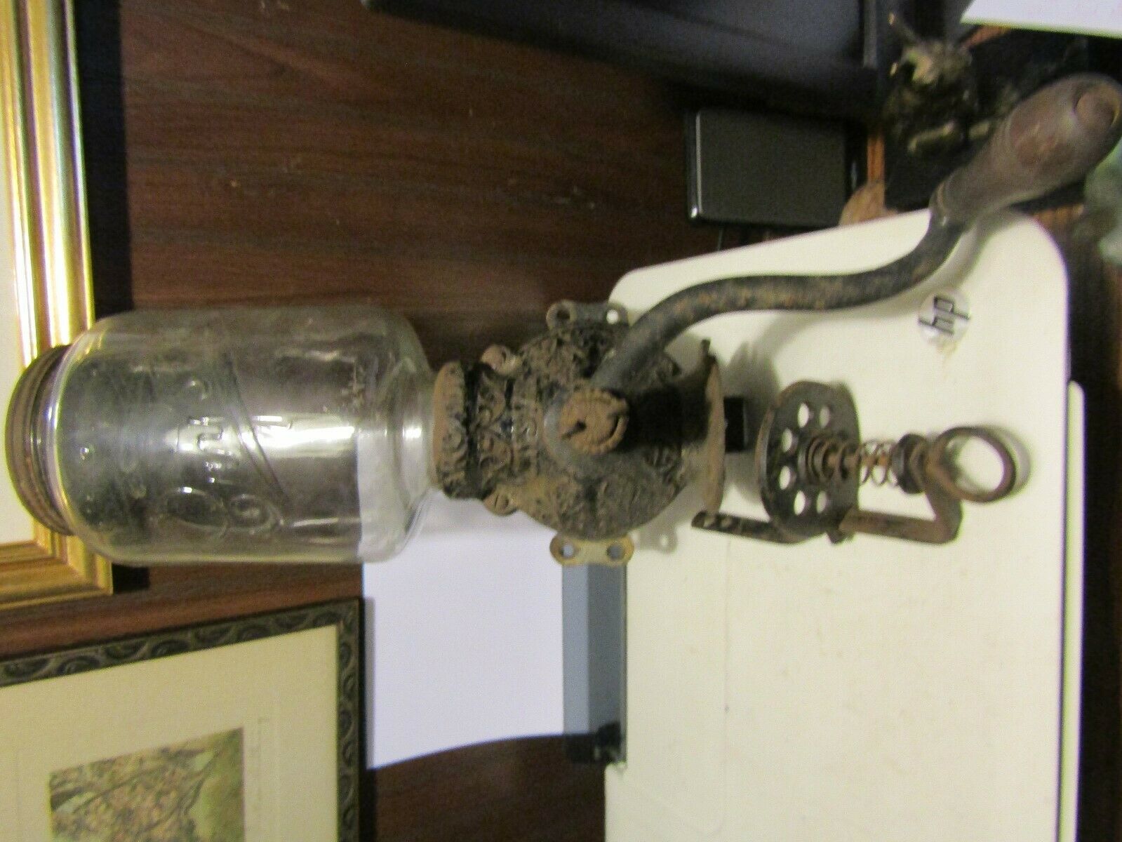 ARCADE CRYSTAL NO.3 COFFEE GRINDER W/ CATCH CUP HOLDER ALL ORIG. 161/2 " L CAST
