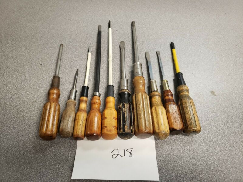 Title (ebay affiliate link): Lot of 10 Vintage Wood Handled Screwdrivers.
