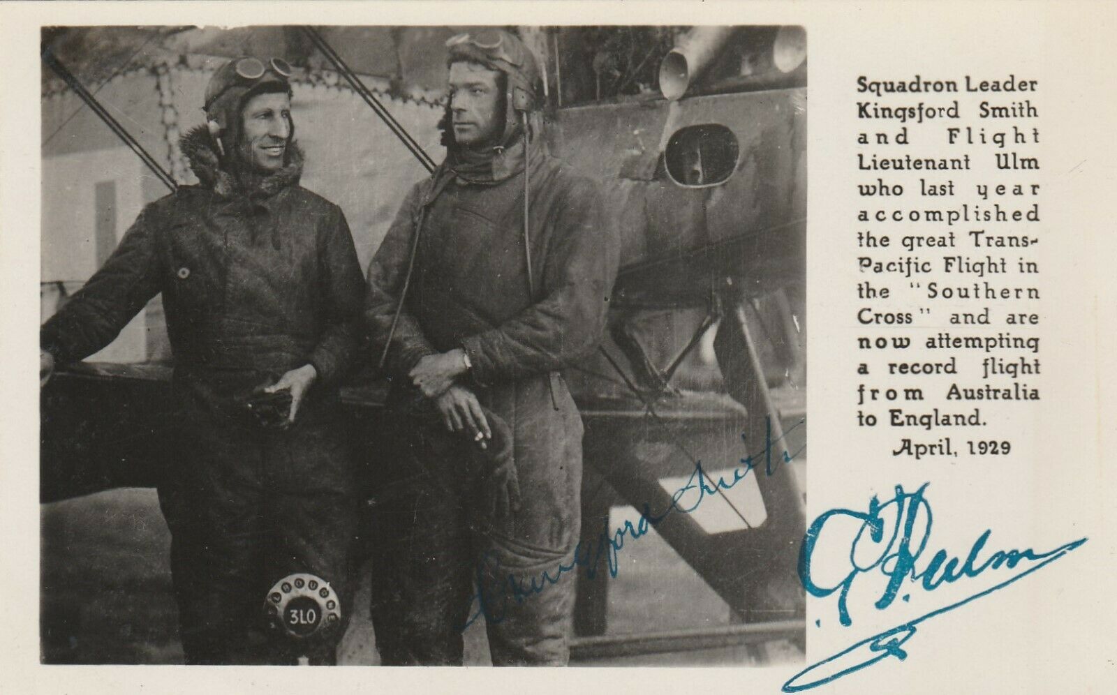 VINTAGE POSTCARD 3LO STUDIO KINGSFORD SMITH AND LIEUTENANT ULM APRIL 1929