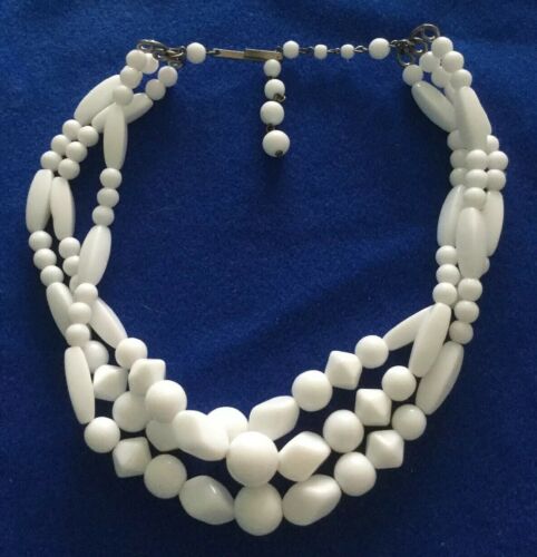Title (ebay affiliate link): Vintage White Milk Glass Triple Strand Short Collar Necklace - c1950s