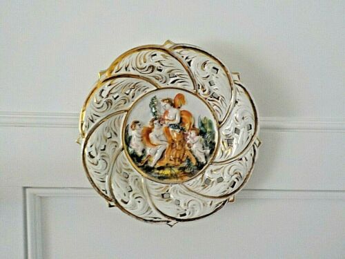 Vintage Capodimonte Porcelain 10" Plate Cherubs Gold /Crown w N mark Italy