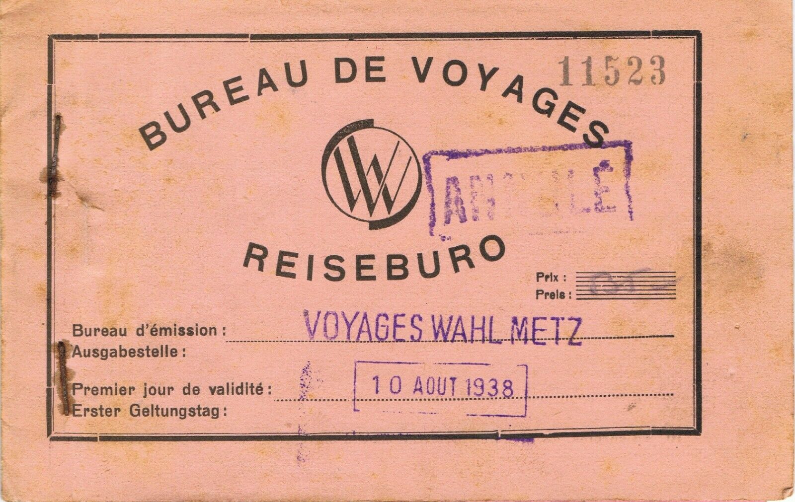 Railway tickets Germany Wahl-Metz third class booklet 1938