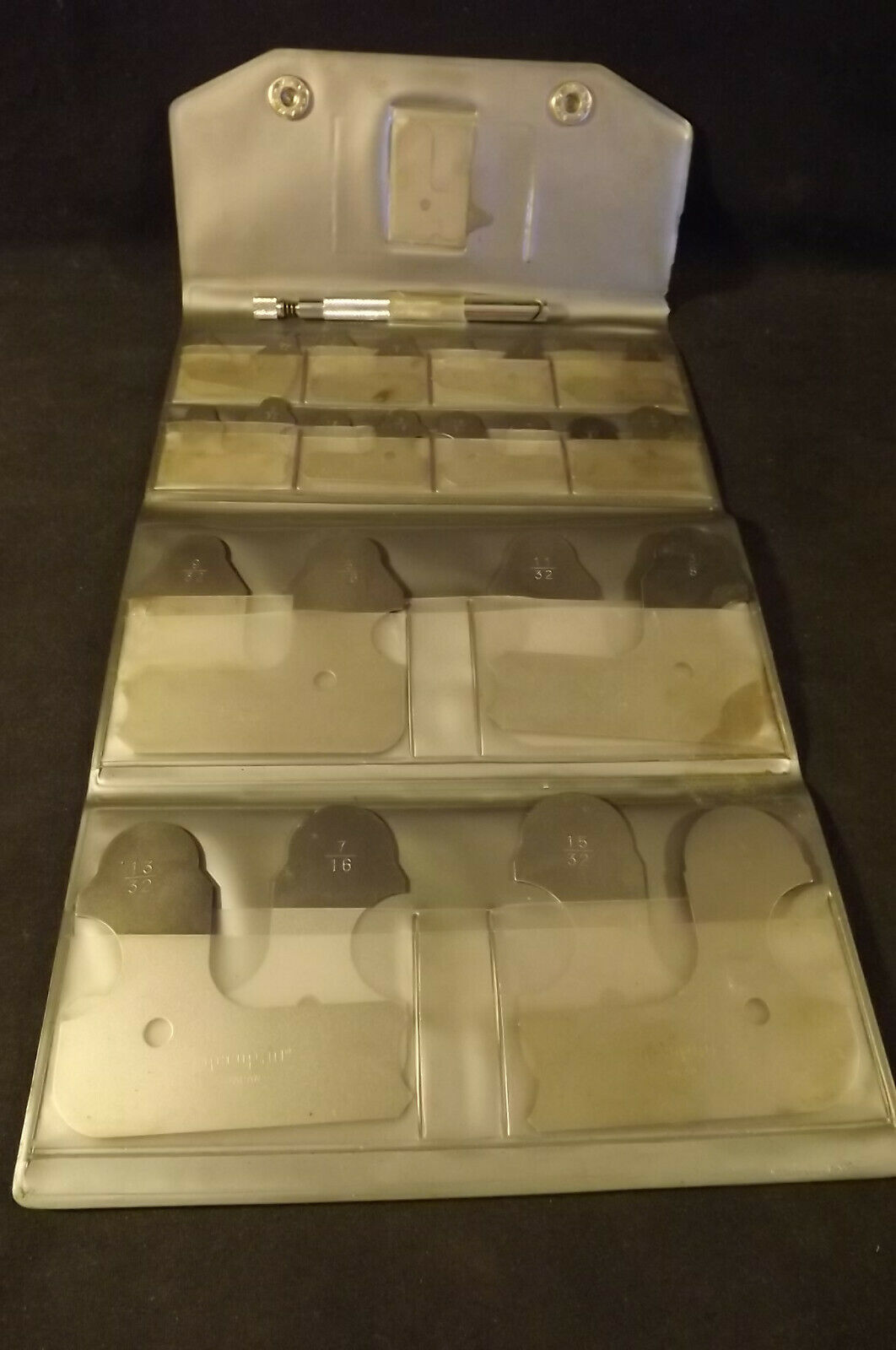 OLD, USED MACHINIST''S TOOLS: ACCUPRO RADIUS GAGE SET W/VINYL CASE, 1/64" to 1/2"