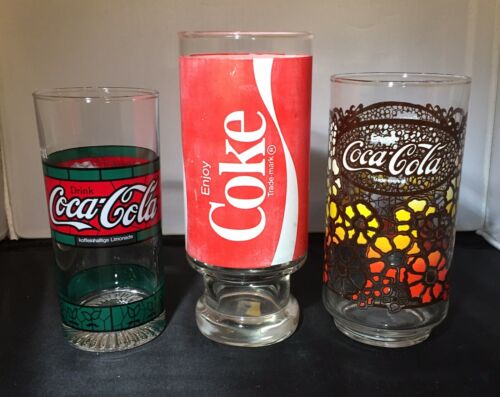 Title (ebay affiliate link): Coca Cola Lot Of 3 Drinking Glasses Coke Rare Vintage USA Germany Glass Soda
