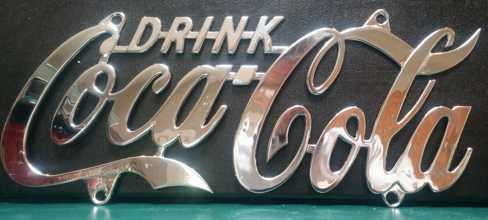 Title (ebay affiliate link): VTG 1998 Retro Drink Coca Cola License Plate Chrome Sign Wall Hanging Script EX