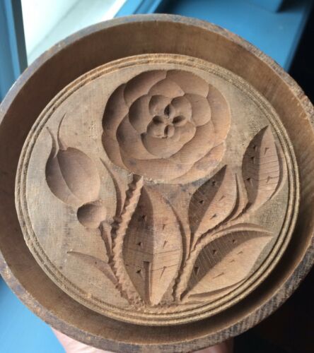 Title (ebay affiliate link): Antique Primitive Wood Butter Mold Press Rose and Rosebud Design
