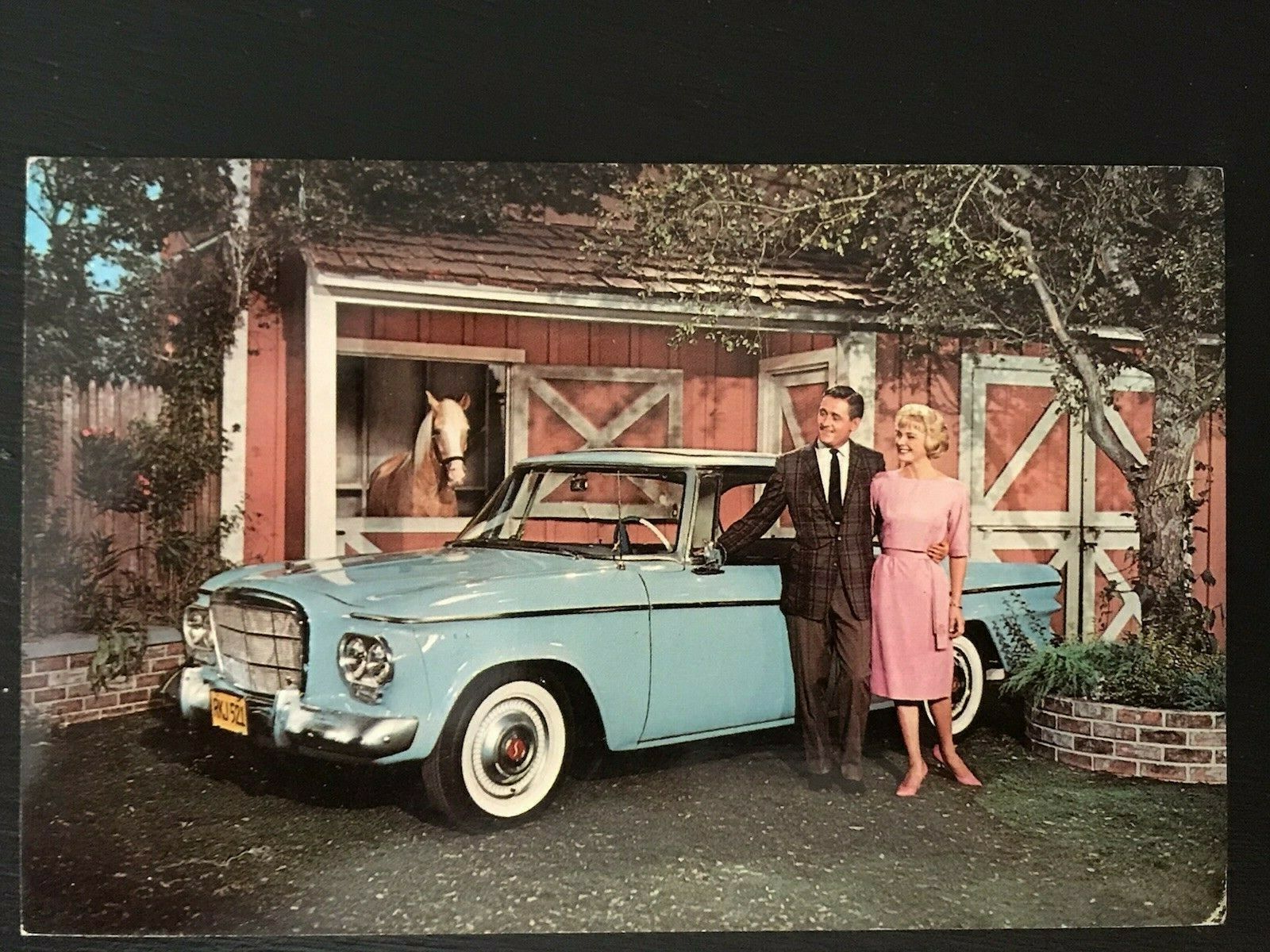 Studebaker Lark, adv. post card, Mr. Ed TV show, with Alan Young, 1962 Lark