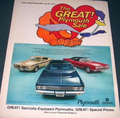 Vintage 1969 Plymouth Barracuda, Fury, Satellite Ad