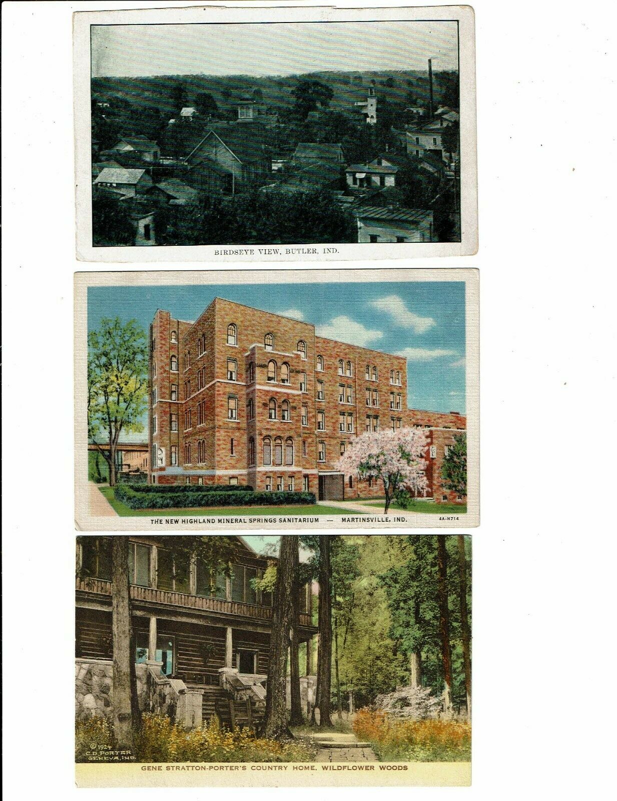 Title (ebay affiliate link): 3 Card Indiana Lot, Butler Bird''s-Eye, Martinsville Sanitarium, Porter Home!