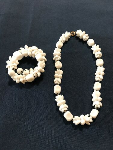 Lovely Vintage Antique Milk Glass Bead Necklace & Bracelet Estate Set