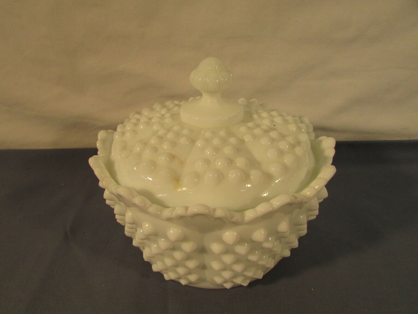 Fenton Milk Glass Hobnail Covered Candy Dish
