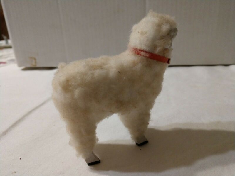 Vintage Antique German Christmas Putz Wooden Stick Leg Wool Sheep Lamb