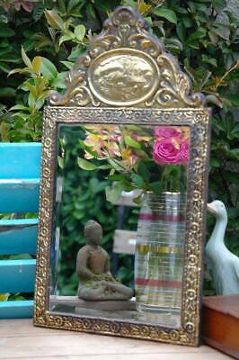 Antique 19thC Dutch Brass Repousse Wall Mirror With Windmill Country Scene CHIC