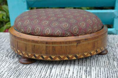 Antique Victorian Needlepoint Foot Stool Marquetry & Bun Feet Country House Chic