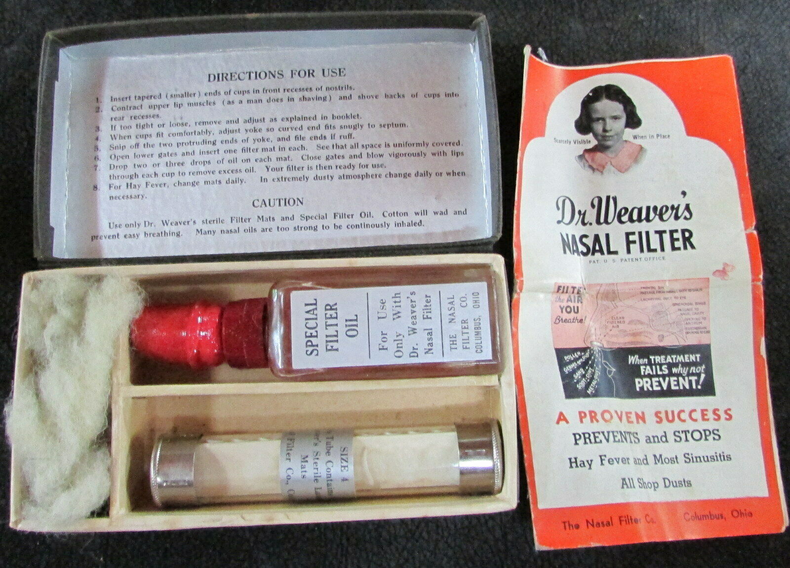 Title (ebay affiliate link): 1910 DR WEAVER''S NASAL FILTER - AIR CONDITIONS THE NOSE KIT