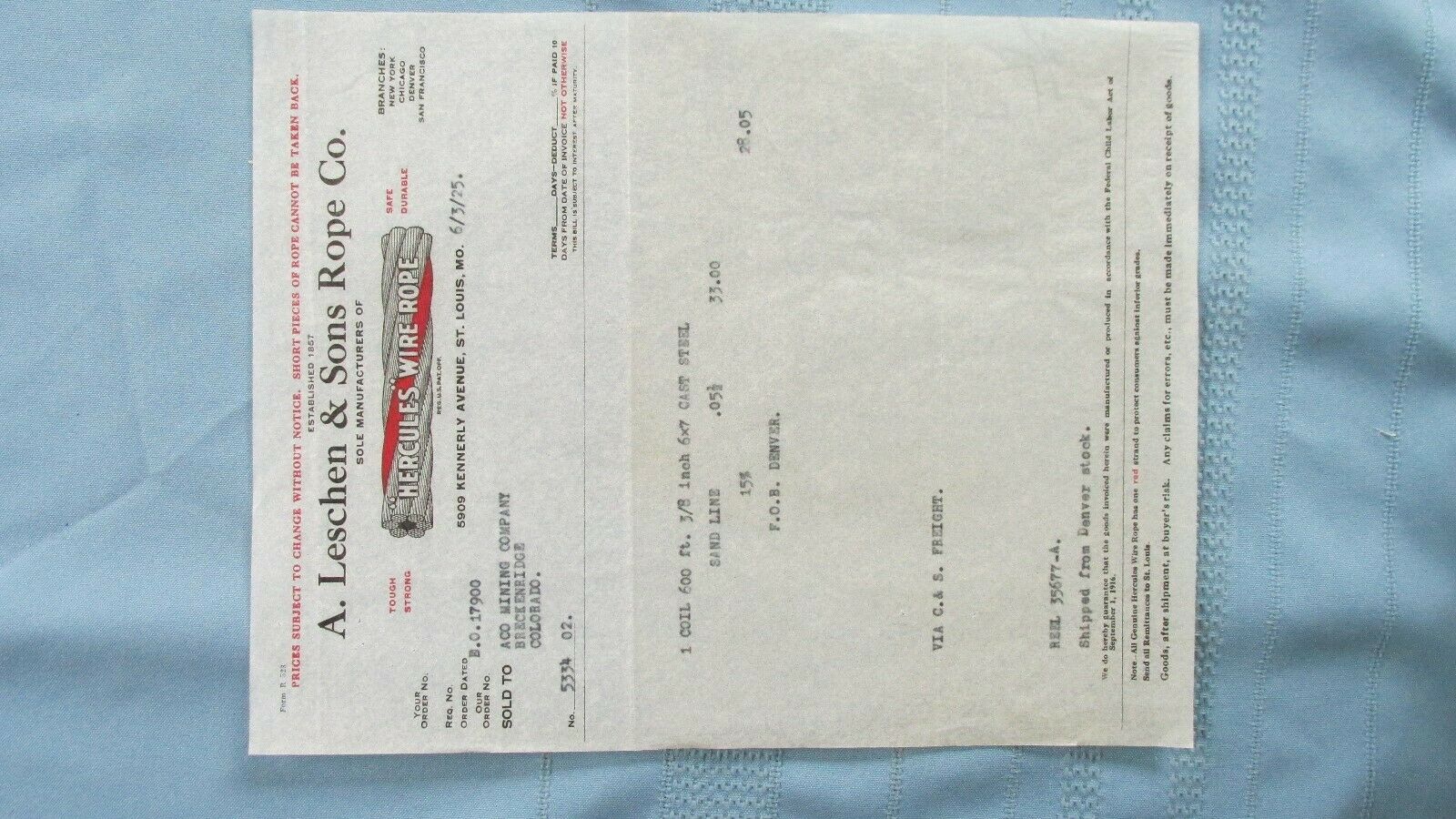 Title (ebay affiliate link): 1925 Breckenridge Colorado Leschen & Sons Rope Company Mining Tram Cable Order