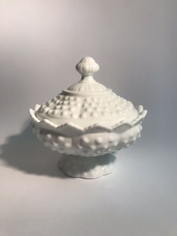 Vintage Fenton Hobnail Milk Glass Covered Dish