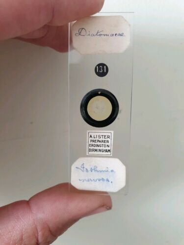 FINE ANTIQUE MICROSCOPE SLIDE DIATOMS BY A.LISTER