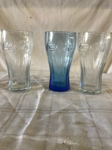 Title (ebay affiliate link): Coca Cola Coke Ice Blue Glass 16oz Drinking Glasses Cup Colored 2 Clear