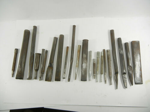 Vintage lot of 22 blacksmith cold chiseles / punches mechanic machinist tool