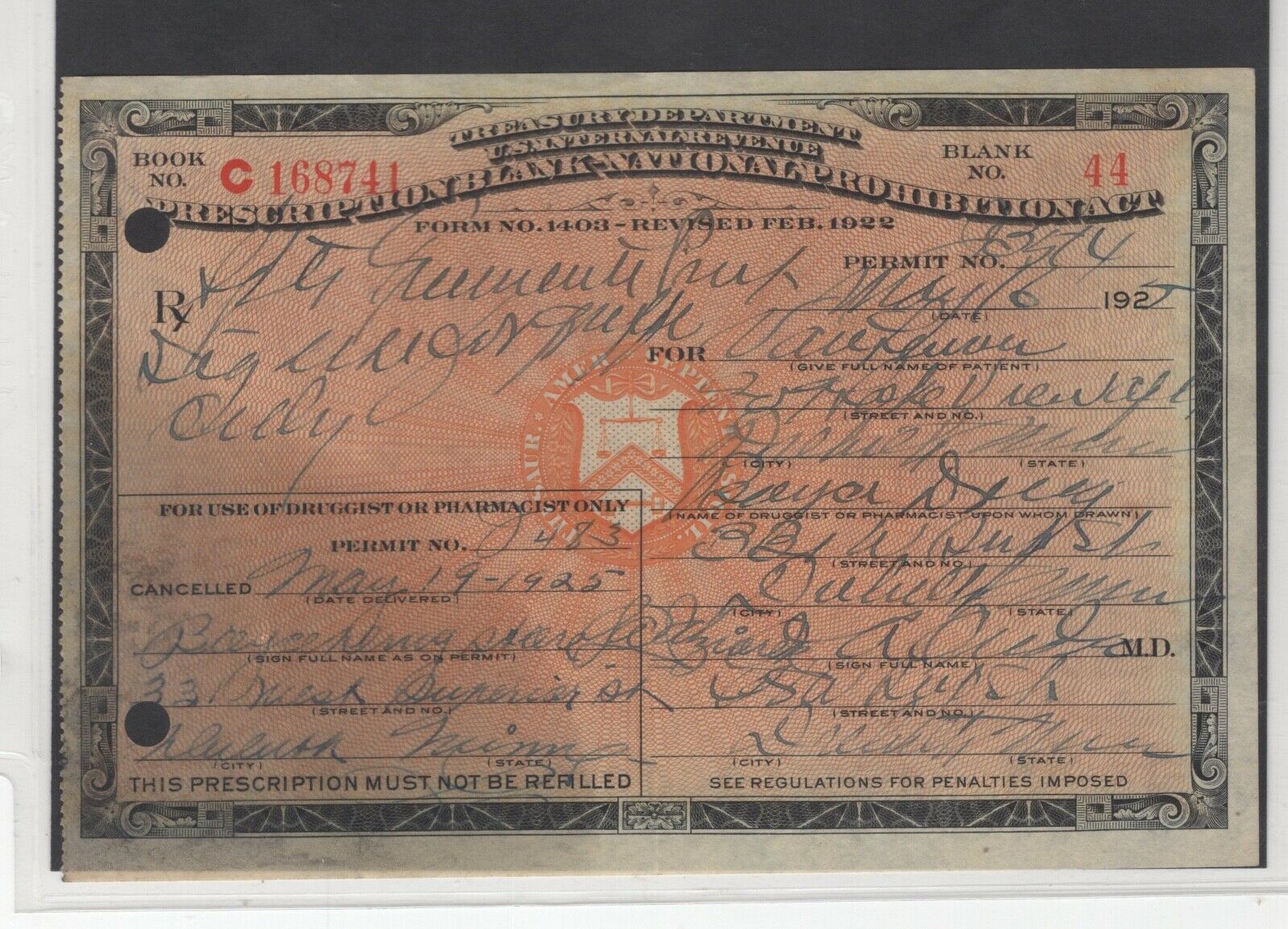 Title (ebay affiliate link): Treasury Department IRS, Prescription under National Prohibition act, 1925 (5964
