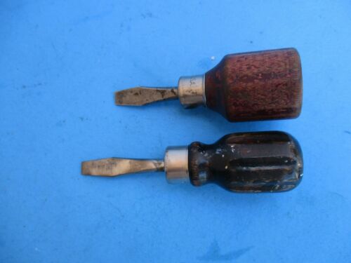 2 vintage wood handle 1/4" stubby slotted screwdrivers