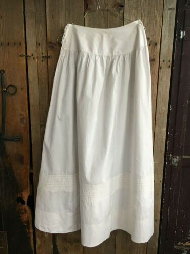 Title (ebay affiliate link): ANTIQUE MUSLIN COTTON PETTICOAT SKIRT TUCKS YOKE MILKGLASS BUTTONS EDWARDIAN