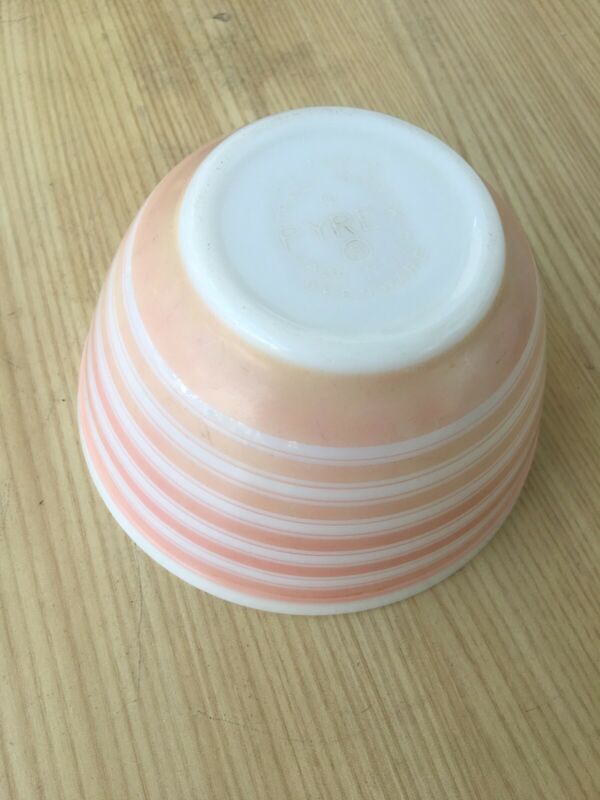 Vintage PYREX 401 PINK RAINBOW STRIPES 1 1/2 PINT MIXING BOWL Milk Glass