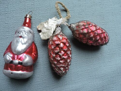 Title (ebay affiliate link): Antique German Glass Christmas Ornament - Santa + 2 Wire Wrap Pine Cones 1920-50
