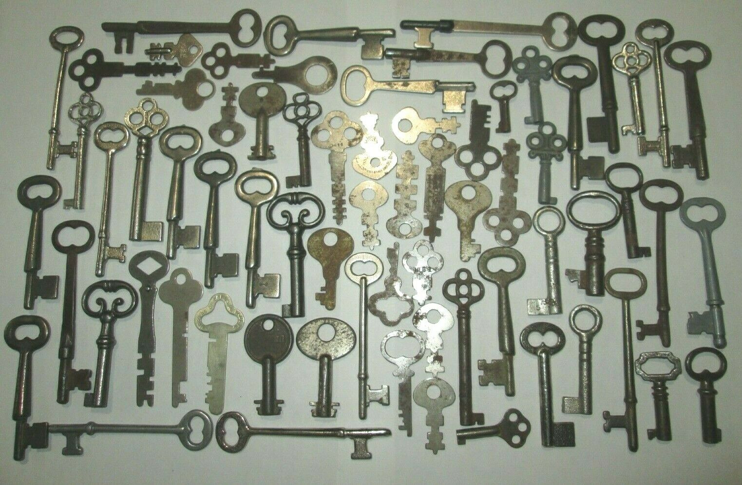 Title (ebay affiliate link): lot of 65 ANTIQUE SKELETON KEYS FURNITURE BARREL CABINET VINTAGE FLAT KEY