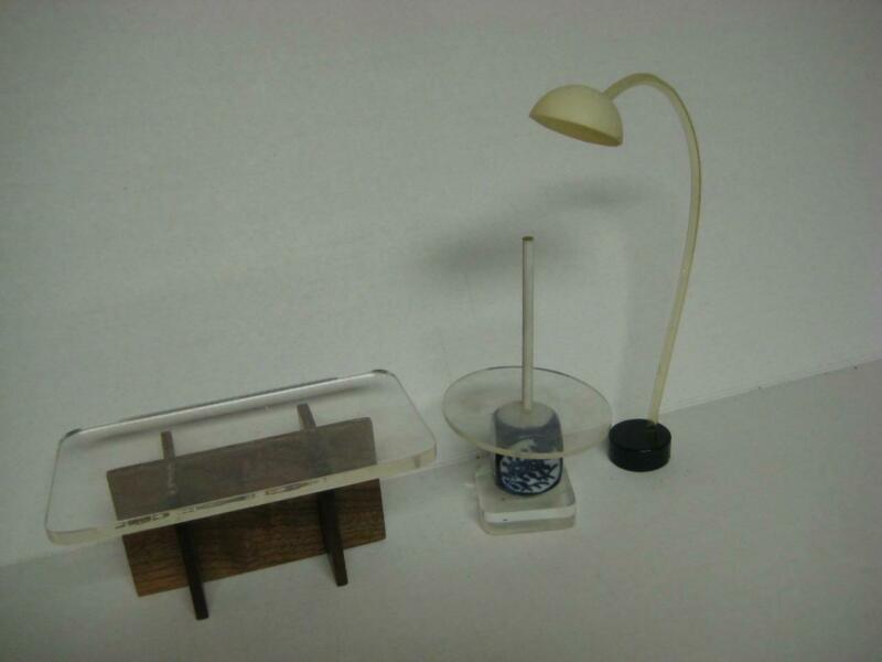 Vintage Dollhouse Miniature Furniture Lot Lucite Top Table Stand Lamp