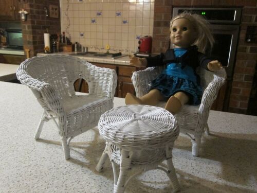 Title (ebay affiliate link): Wicker White 3 piece set fits American Girl Doll furniture