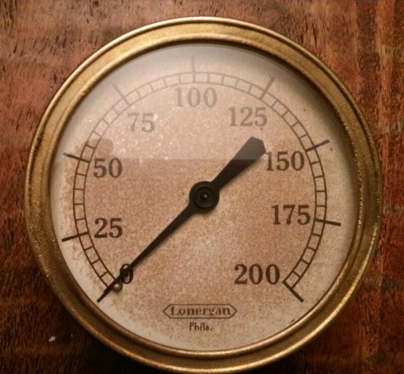 VINTAGE LONERGAN 200 LB. STEAM PRESSURE GUAGE 4 INCH INDUSTRIAL STEAMPUNK TRAIN