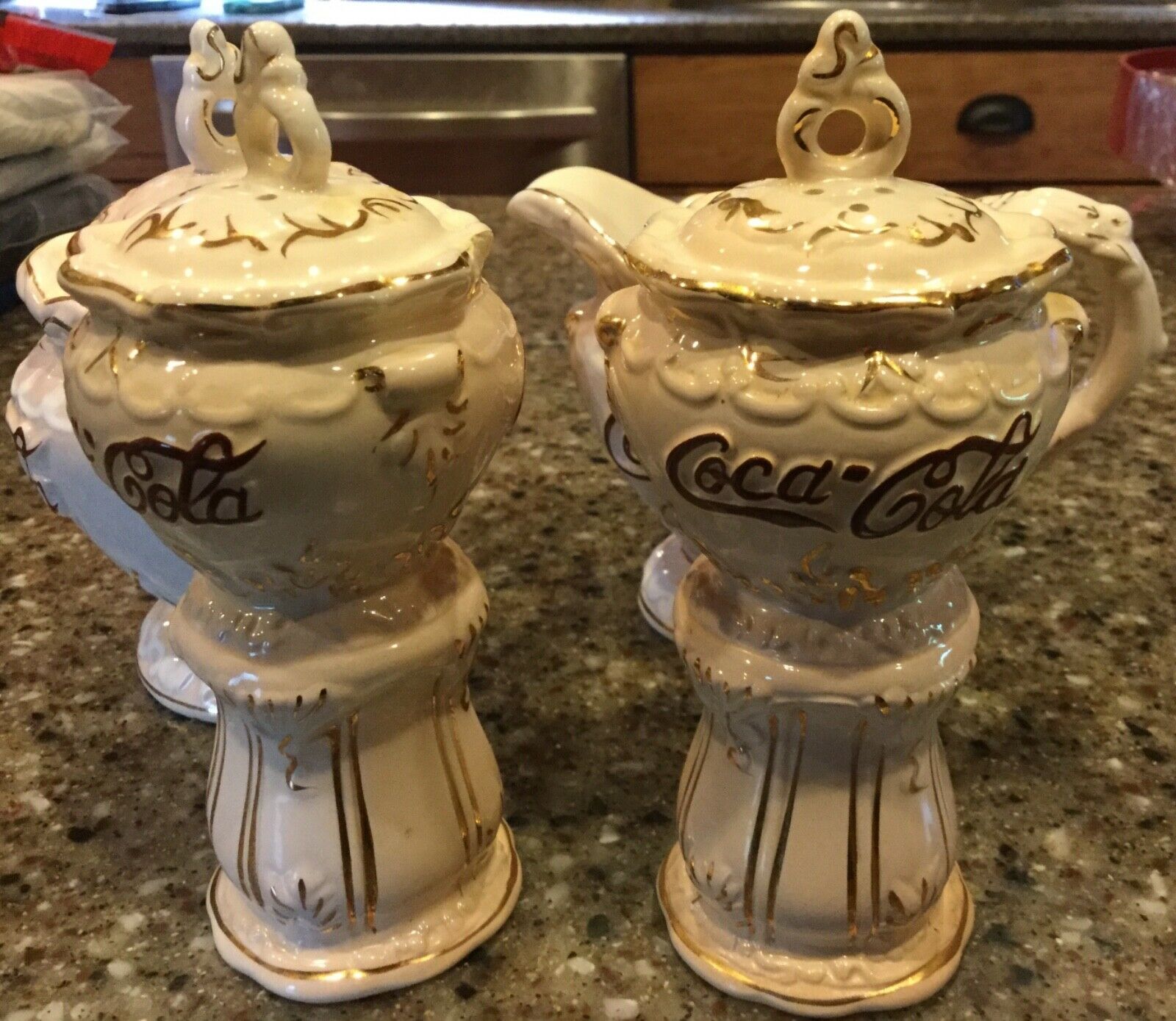Coca Cola Victorian Series Salt & Pepper Shakers & Sugar & Creamer
