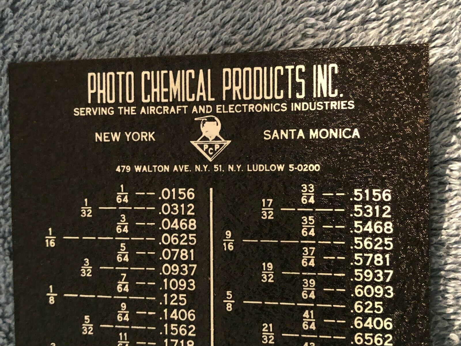 THIS SAMPLE WRINLAY PRINTED - PHOTO CHEMICAL PRODUCTS - METAL PLATE 5X3.5
