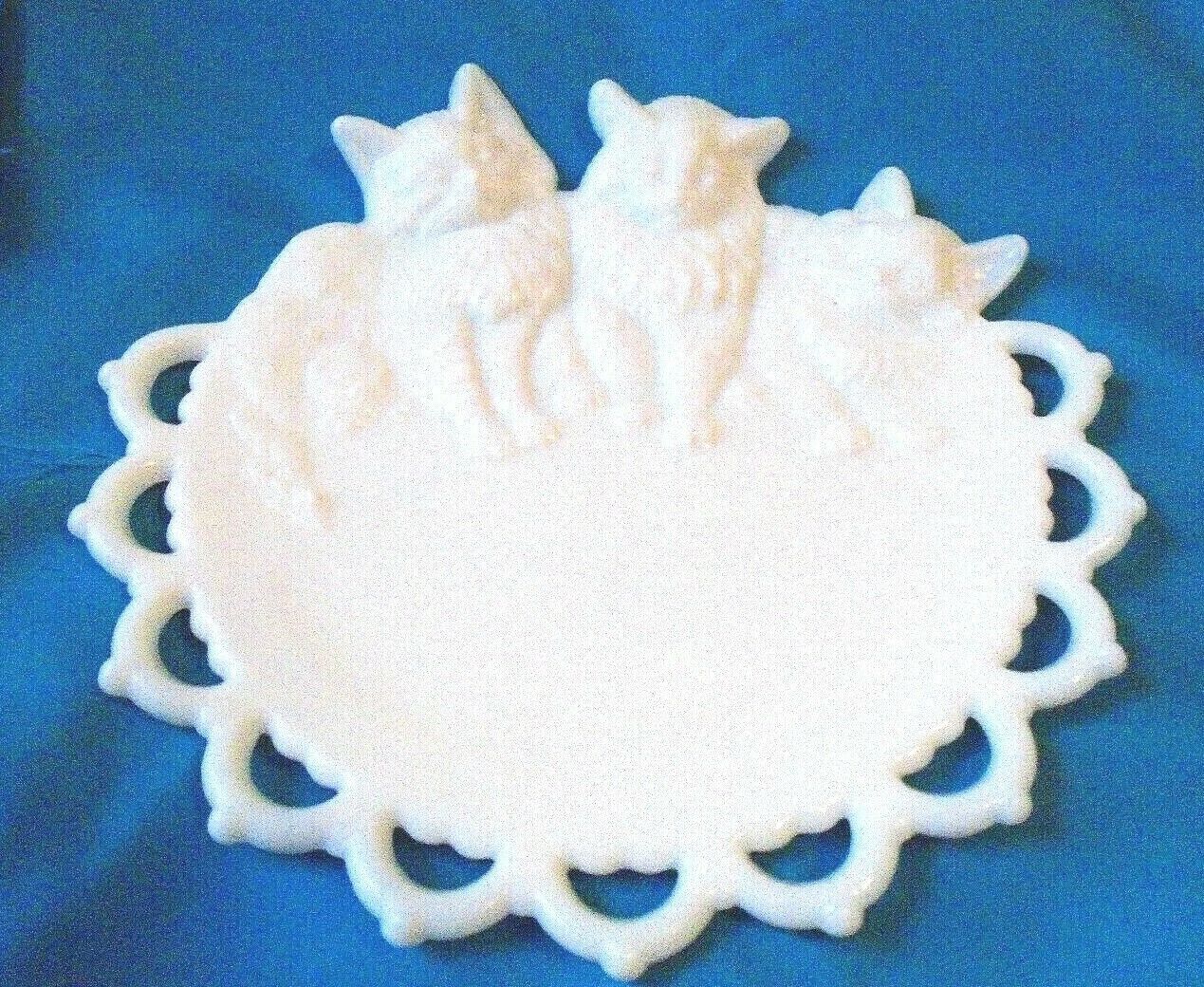 Vintage Westmoreland Milk Glass Cat Kitten Trio Lace Edge Plate 8"-WG LOGO