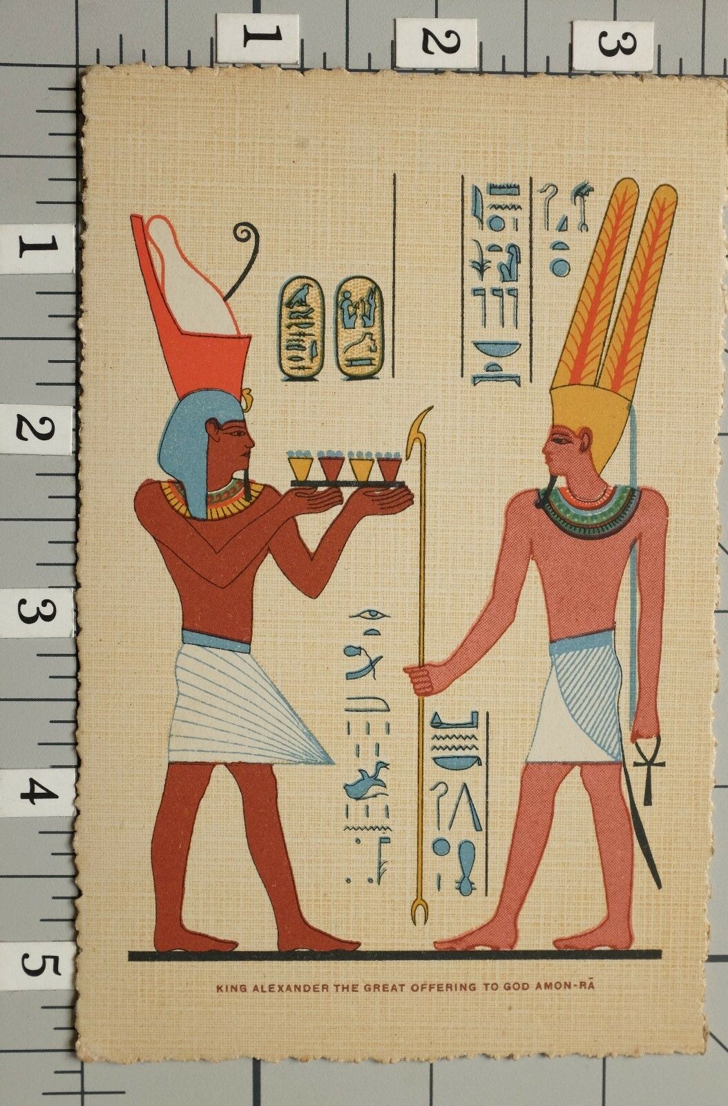 VINTAGE POSTCARD KING ALEXANDER THE GREAT OFFERING TO GOD AMON-RA EGYPTIAN