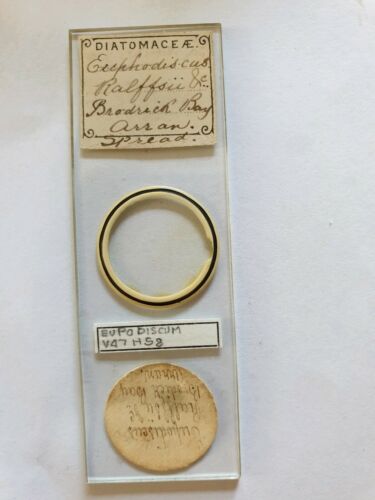Title (ebay affiliate link): FINE ANTIQUE DIATOM MICROSCOPE SLIDE" SPREAD FROM BRODRICK BAY ARRAN"