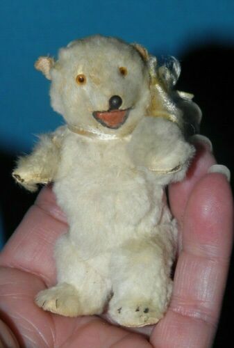 Title (ebay affiliate link): CUTE 2 7/8 Old ANTIQUE BEAR with rabbit fur covering open mouth with teeth