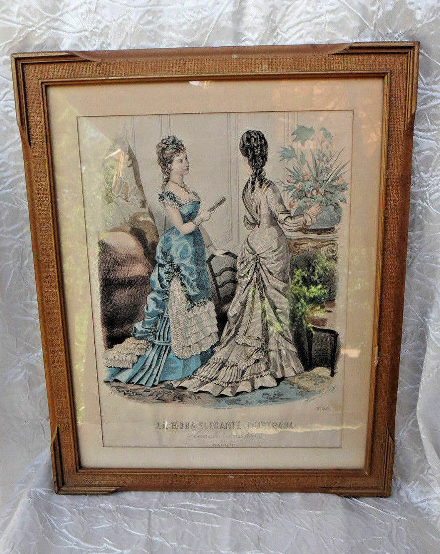 Antique Gold Gilded Frame La Moda Elegante Fashion Print Madrid